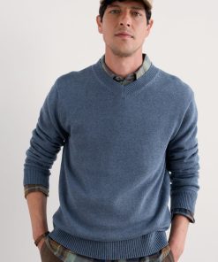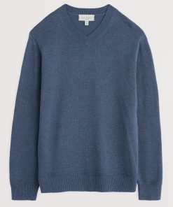 Seasalt Cornwall Men’s Organic Cotton Knitted V-neck Jumper – Mainbrace Jumper | Vintage Indigo