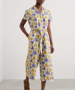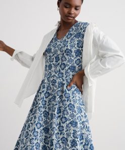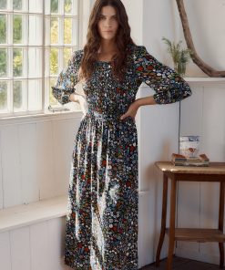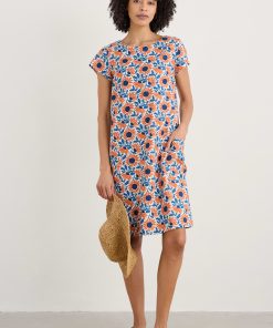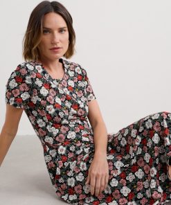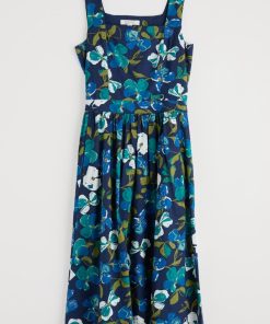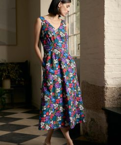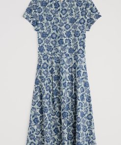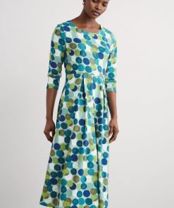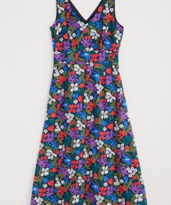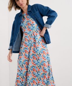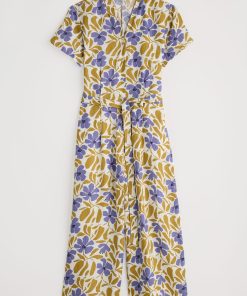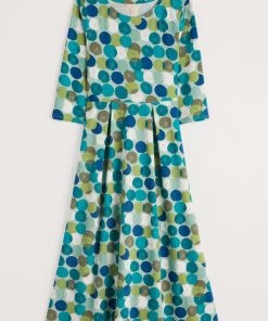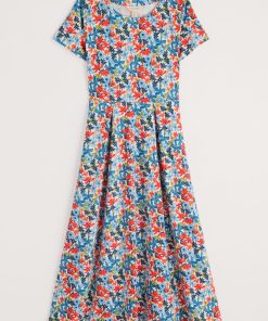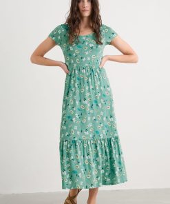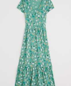 Seasalt Cornwall Women’s Tor View Maxi Length Printed Jersey Summer Dress | Chalk Flower Sage Leaf