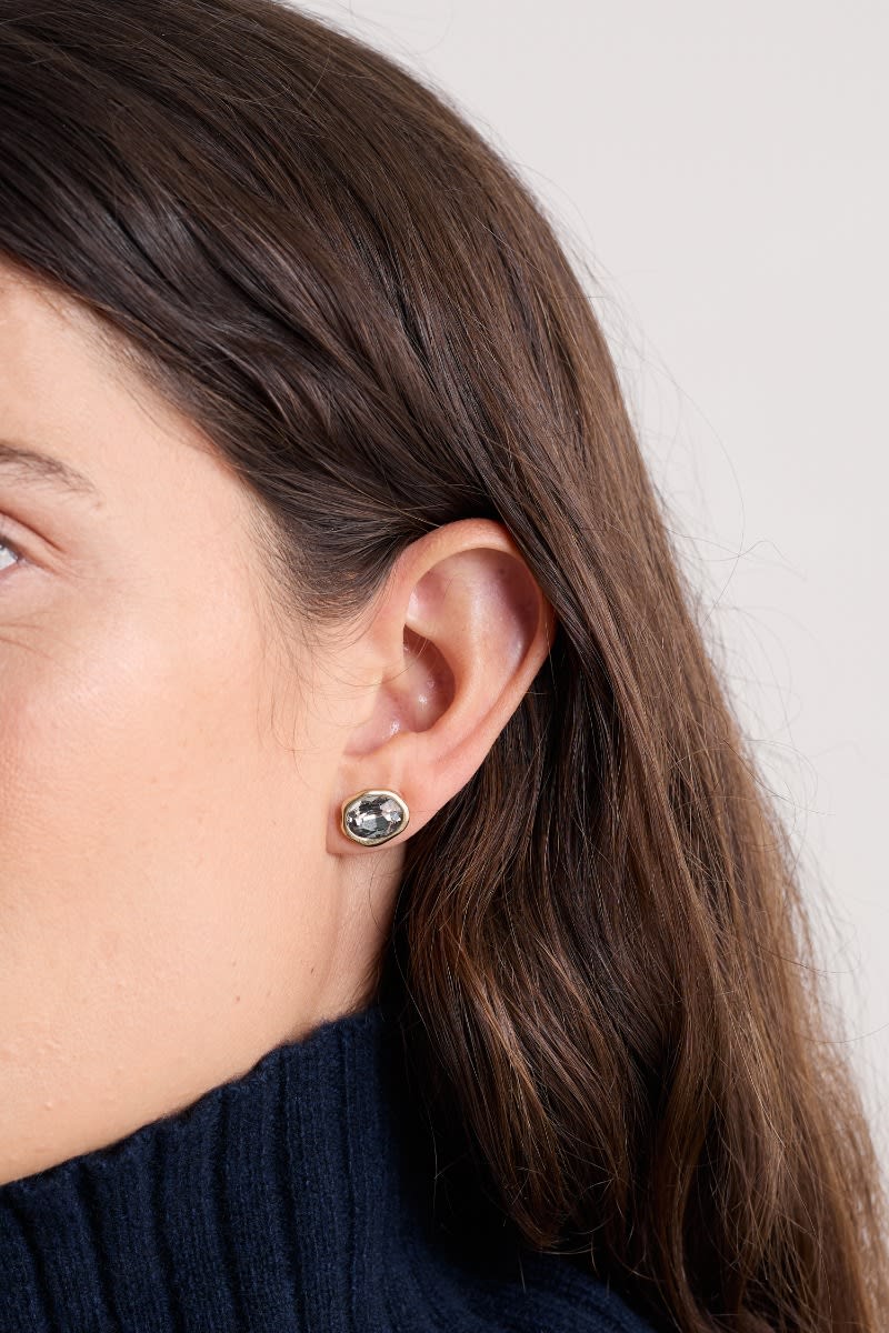 Our simple stud earrings bring a subtle touch of sparkle to any outfit. The multifaceted gem is set in an organically shaped brass surround with contrasting warm tones. A versatile pair that’s discreet for everyday wear and gleams in the evenings.