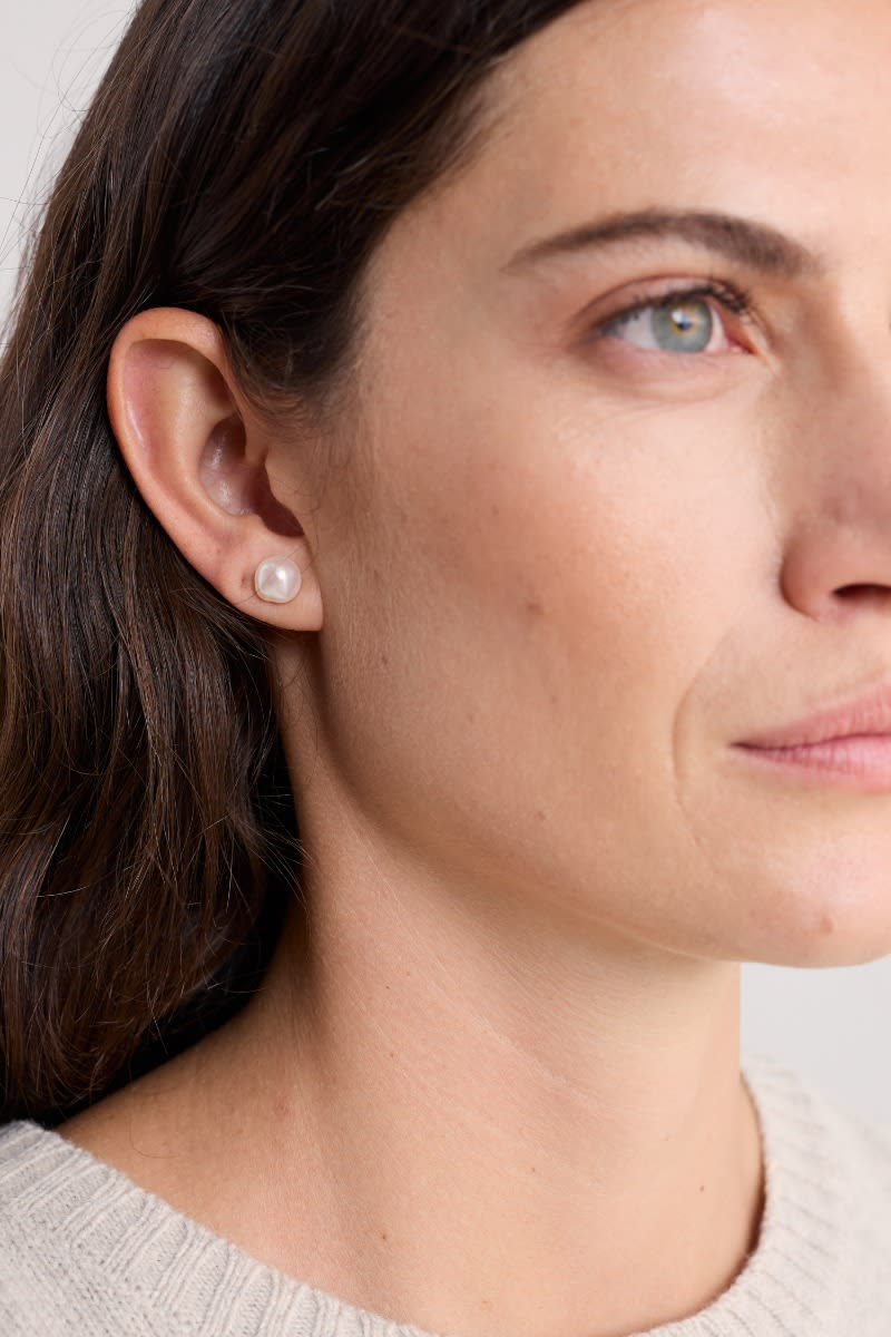For a timeless look, complete your outfit with a pair of delicate pearl earrings. These elegant little earrings are crafted from freshwater pearls, famous for their soft lustre and subtly characterful shapes. We’ve used a warm gold-toned setting, which enhances the subtle translucence of the pearls.