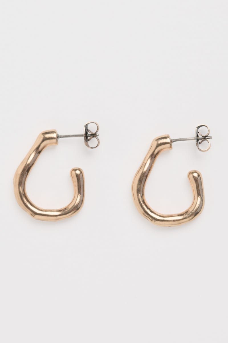 Our Feroner earrings are a contemporary take on the classic half hoop design. Their irregular shape gives them a natural feel, while the lightly textured gold-toned finish catches the light. A versatile pair of earrings for day or evening wear.