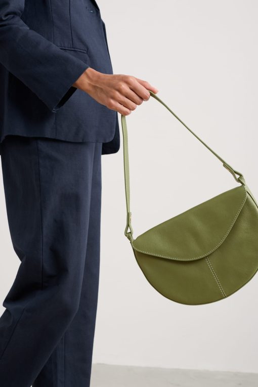 A stylish shoulder bag with a neat, semi-circular shape, crafted from fine LWG leather. The classic front flap conceals the easy-to-use popper fastening, and inside, there’s a useful slip pocket and recycled polyester lining in a smart contrasting colour. The leather strap is non-adjustable for a clean finish.