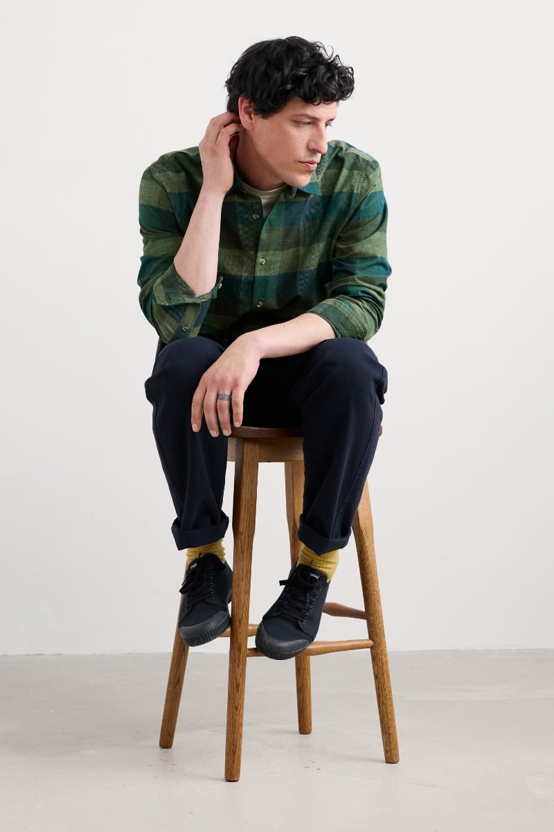 The soft, laundered finish of our organic cotton shirt is wonderfully comfortable to wear, with the yarn dye giving the stripes deep and lasting colour. Touches such as the straight hem and the mock horn buttons make this a versatile piece. Dress up with a blazer or go casual with jeans.