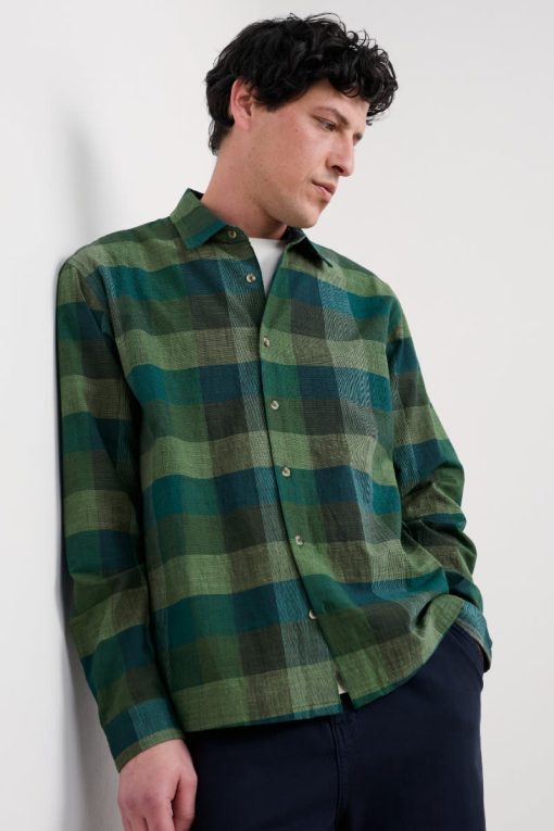 The soft, laundered finish of our organic cotton shirt is wonderfully comfortable to wear, with the yarn dye giving the stripes deep and lasting colour. Touches such as the straight hem and the mock horn buttons make this a versatile piece. Dress up with a blazer or go casual with jeans.