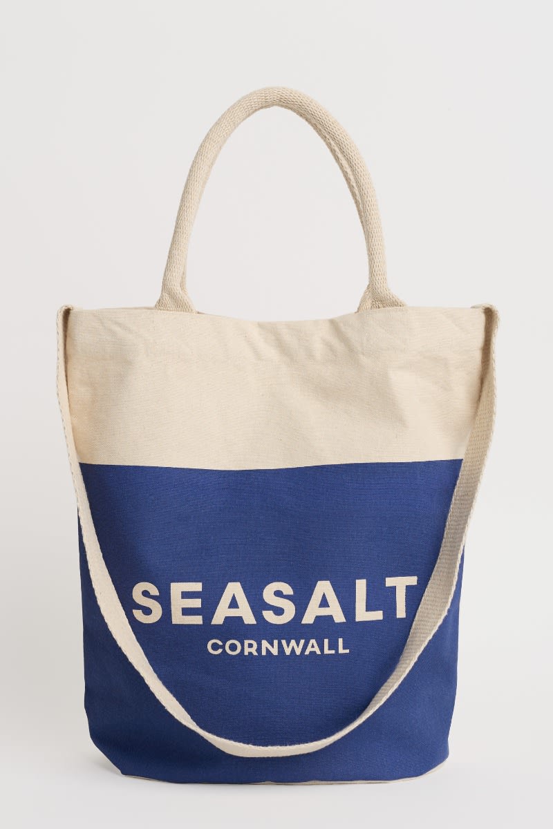 Seasalt Cornwall Accessories Canvas Navy Blue Logo Tote Bag | Seasalt | Half Logo