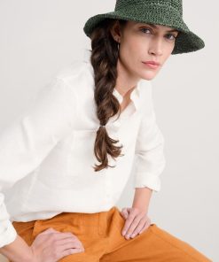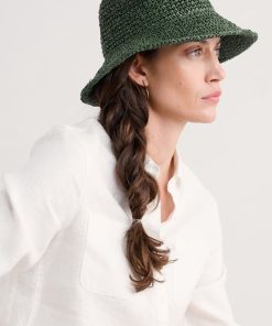 A straw effect woven paper sun hat with a short brim and elegant, retro feel. Perfect for popping into your suitcase for summer getaways, or in your beach bag for trips to the sea.