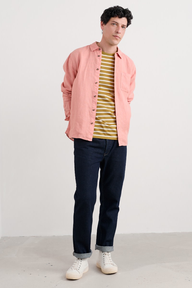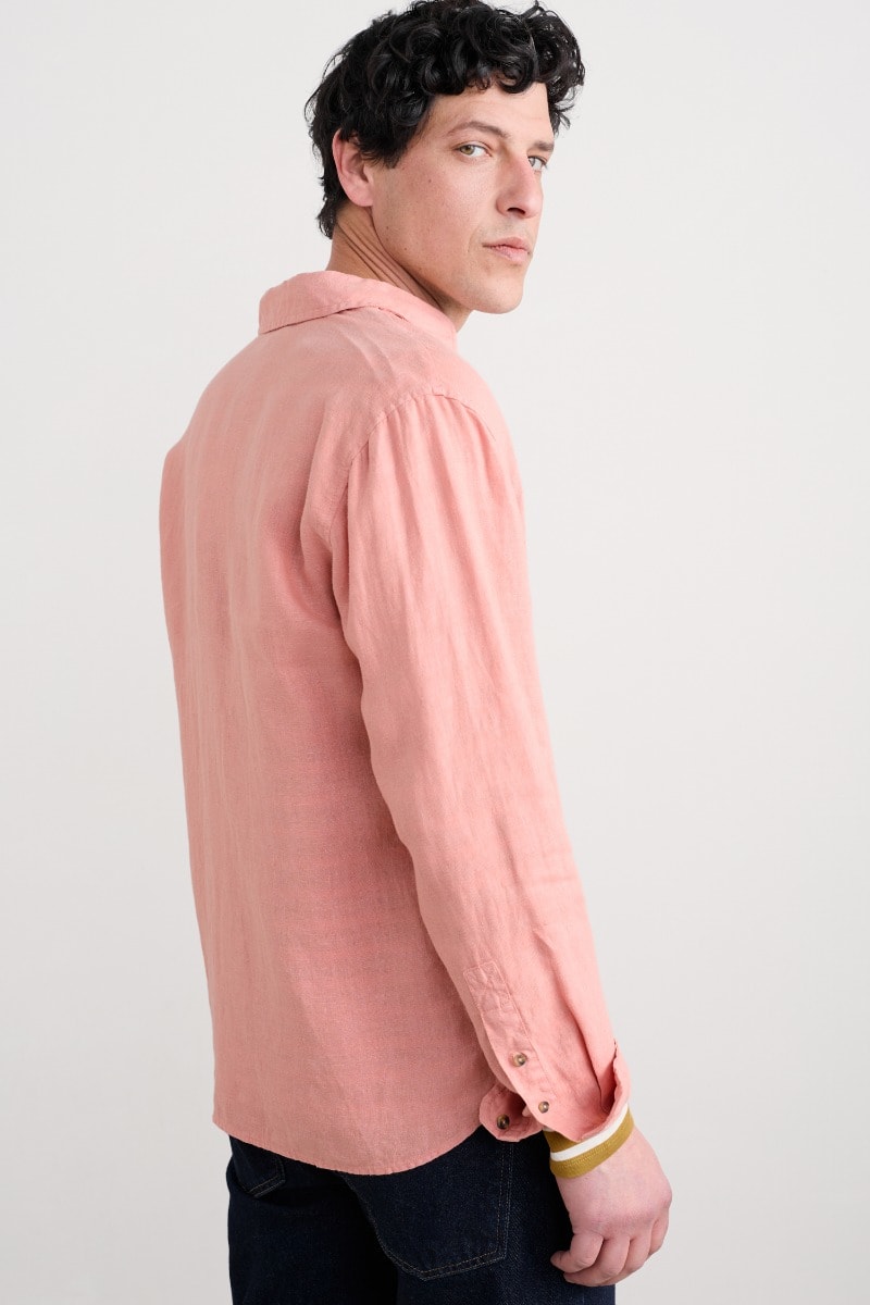 An easy-fitting shirt made from breathable linen, with long sleeves that are easy to roll up for casual weekends. The curved hem is slightly stepped so it looks great untucked, or worn unbuttoned over a T-shirt. Garment-dyed for soft and characterful colour.