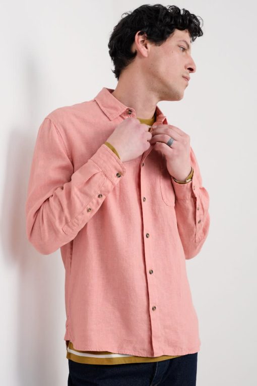 An easy-fitting shirt made from breathable linen, with long sleeves that are easy to roll up for casual weekends. The curved hem is slightly stepped so it looks great untucked, or worn unbuttoned over a T-shirt. Garment-dyed for soft and characterful colour.