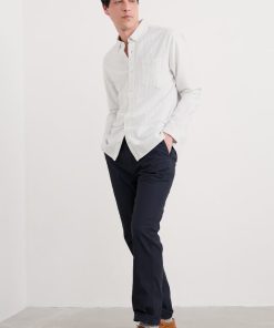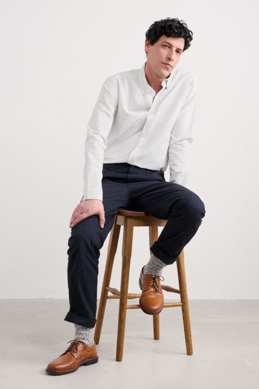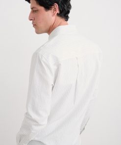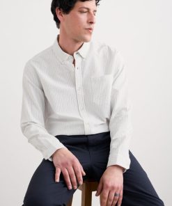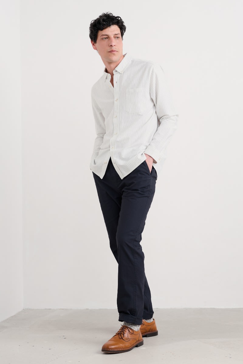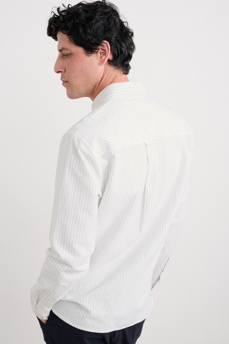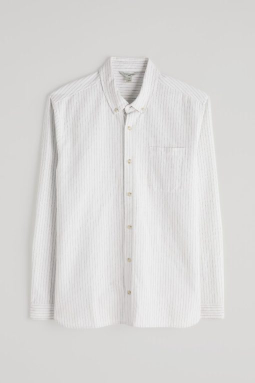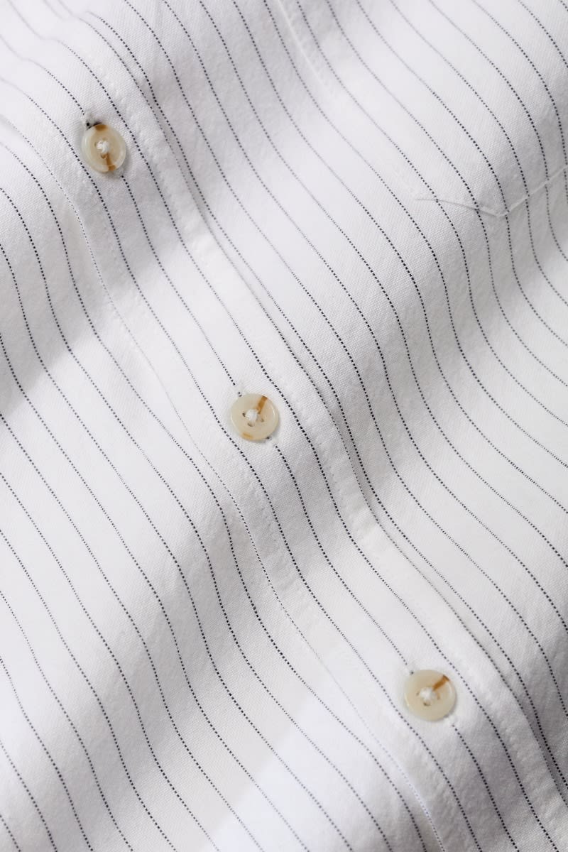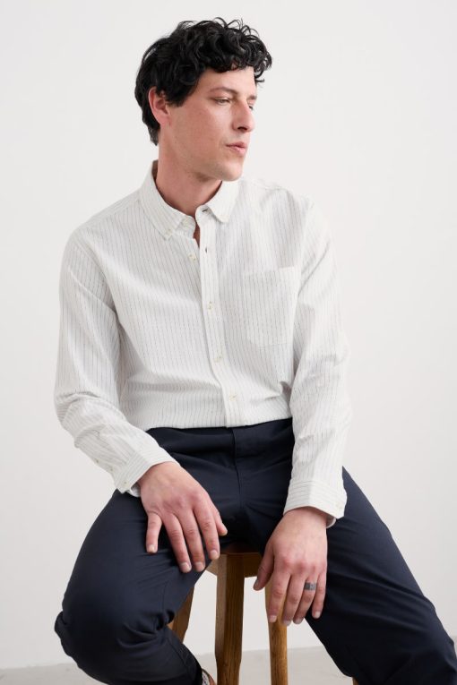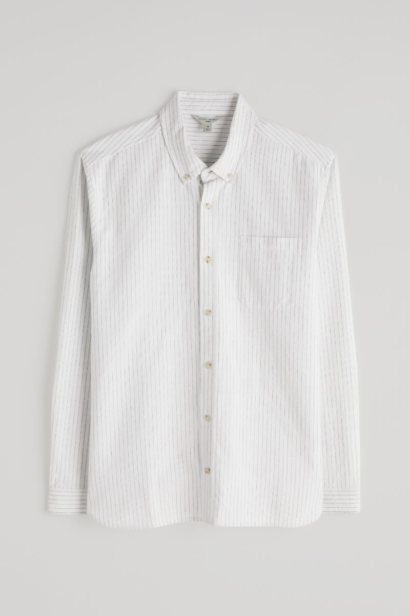 A classic oxford shirt with a regular fit, curved hems and a button-down collar. Made from a softly laundered organic cotton with a subtle stripe for a more casual look.