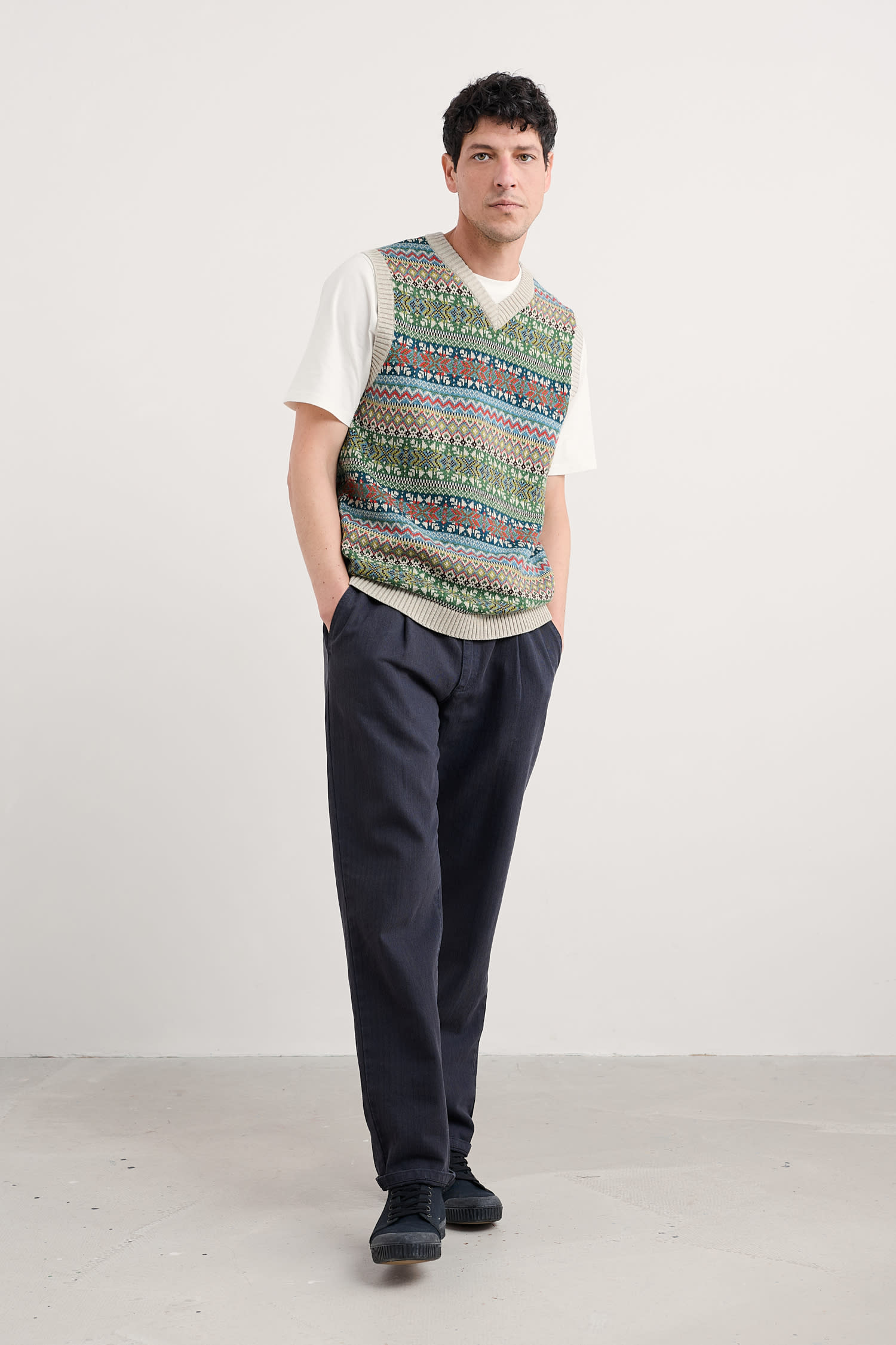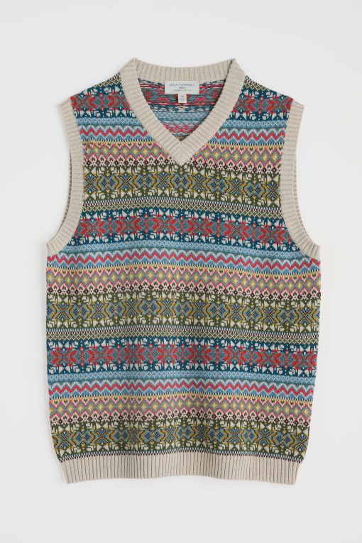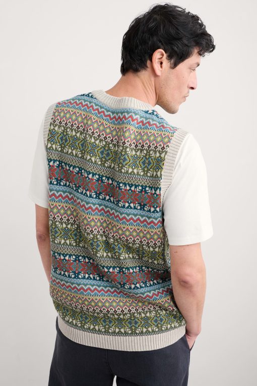 Seasalt Cornwall Men’s Kitto Fair Isle Knitted Vest | Twigs Kingfisher