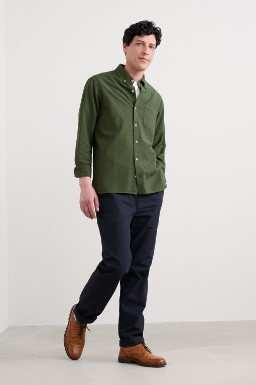 A relaxed oxford shirt with a casual, lived-in look. Woven with 100% organic cotton and garment-dyed for a softly laundered finish, the Jenken features a classic button-down collar and regular fit.