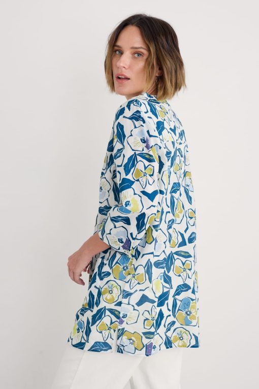 Made from lightweight cotton voile in a unique Seasalt print, our Aventurier Tunic is cut in a loose-fitting smock style, making it super comfortable and cool when the weather warms up. It has 3/4 length sleeves, a pretty notched V neck and two large patch pockets at the front. We think it looks great with leggings and colourful leather sandals.