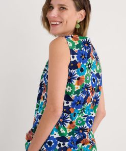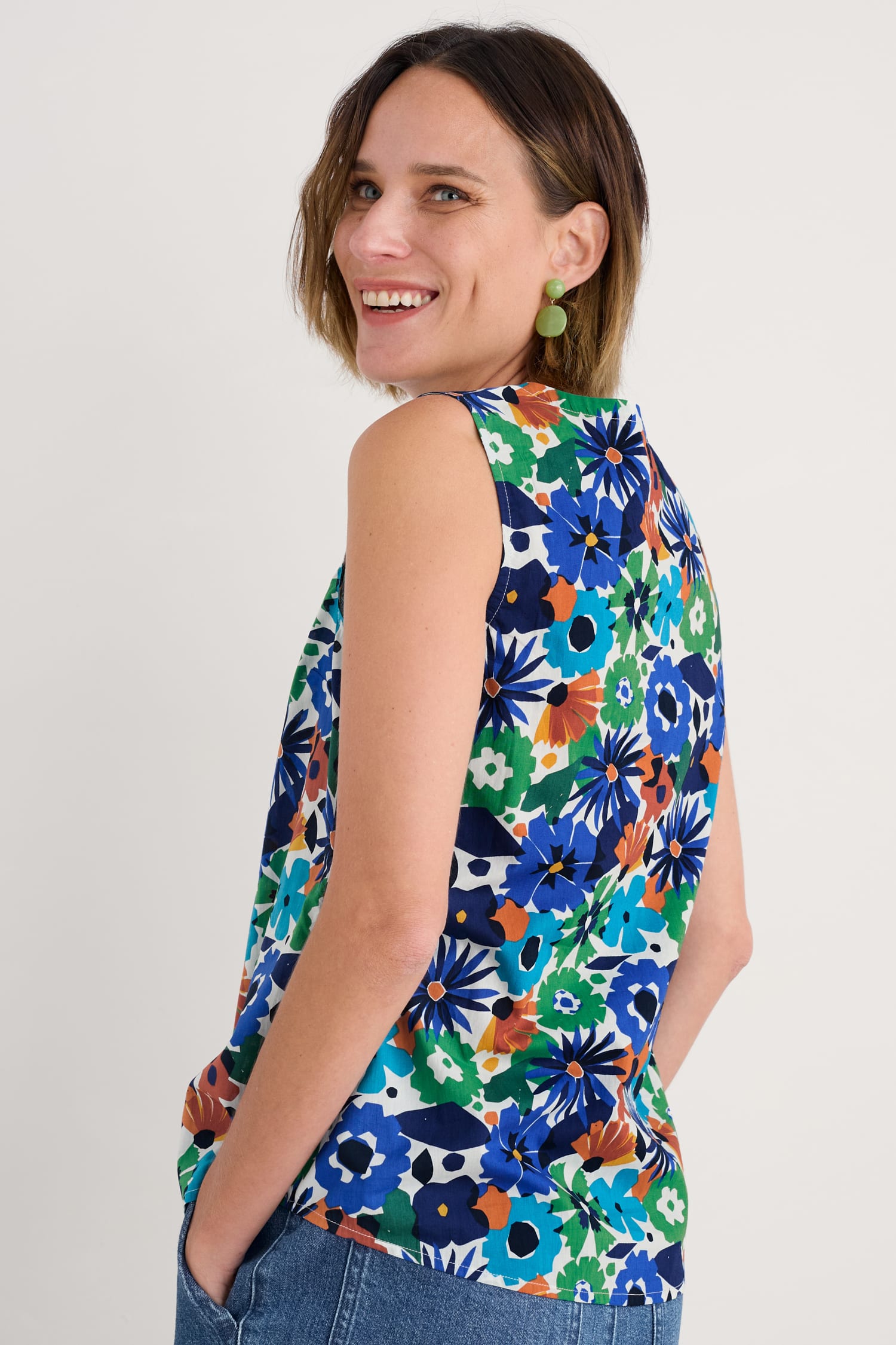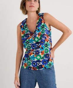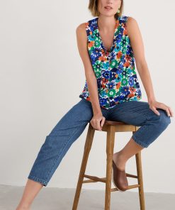 A cool and airy sleeveless top in a choice of unique Seasalt prints. Our Cobbs Well Top has a pretty V neck with keyhole detail and fine rouleau ties. Team it with tailored crops or denim and a fine knitted cardigan for effortless style.