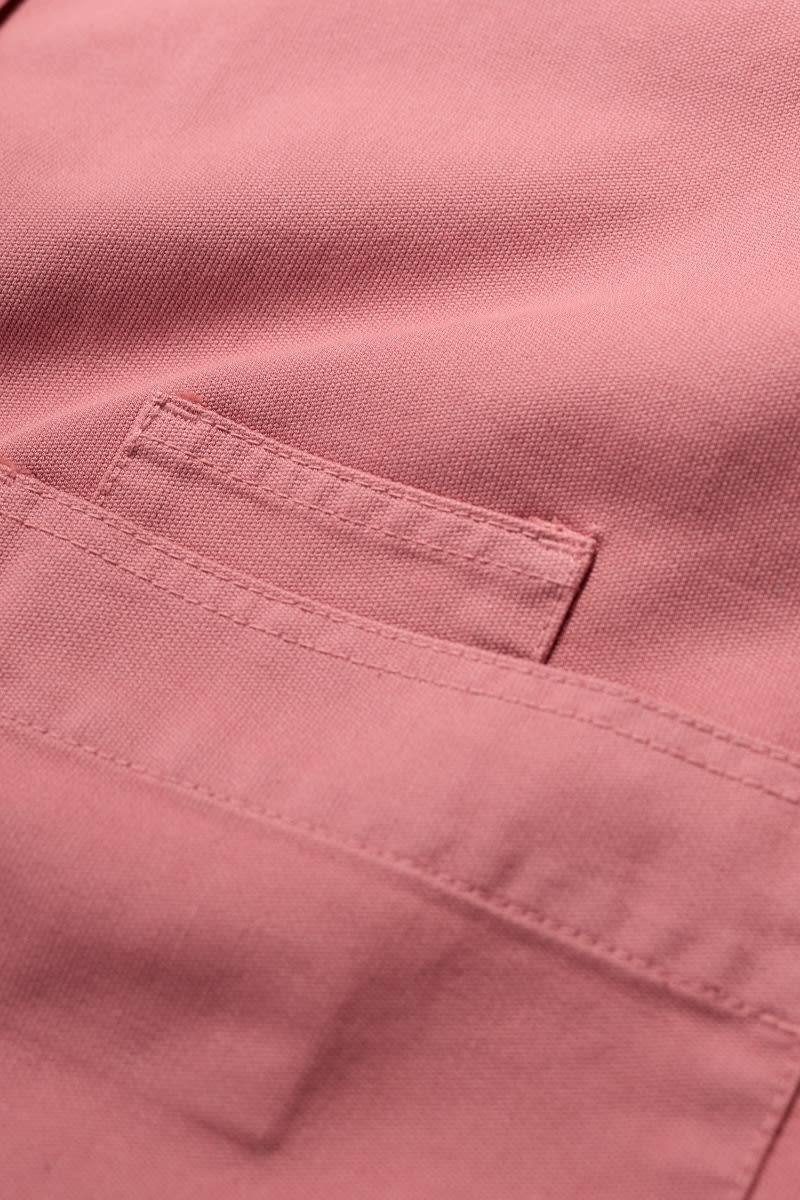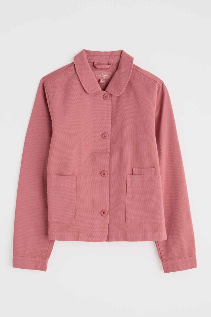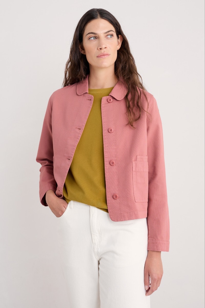 A garment-dyed organic cotton jacket with a soft, lived-in look. This workwear style is inspired by the studiowear of artists, with simple and easy styling, button cuffs, a rounded collar and square patch pockets, with an extra paint-brush compartment. A brilliant alternative to a denim jacket.