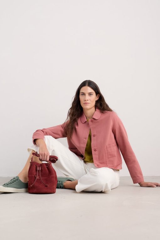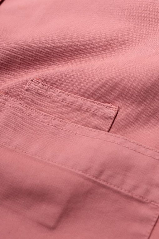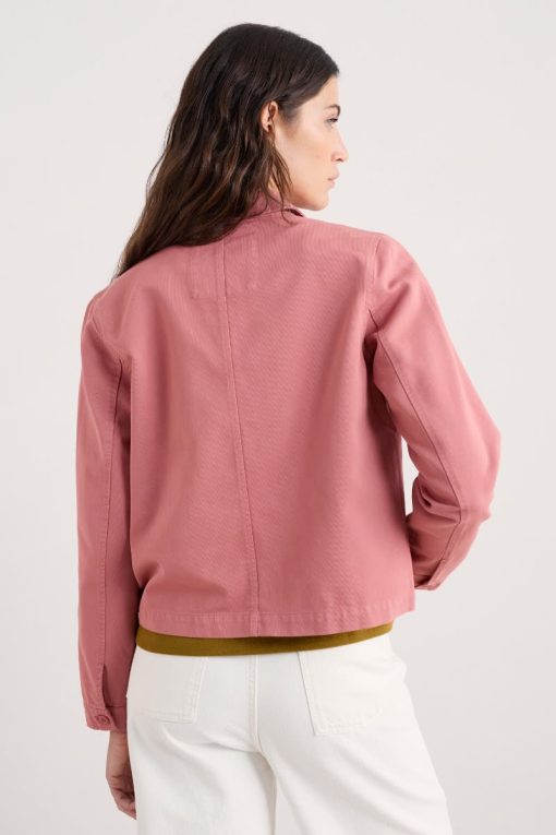 A garment-dyed organic cotton jacket with a soft, lived-in look. This workwear style is inspired by the studiowear of artists, with simple and easy styling, button cuffs, a rounded collar and square patch pockets, with an extra paint-brush compartment. A brilliant alternative to a denim jacket.