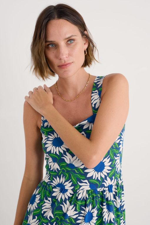 A new summer favourite to take you from the beach to the bar all season long. Made from soft organic cotton with a touch of stretch, we’ve given the Deep Water Dress a flattering square neck with wide straps. Elasticated smocking on the back creates extra space for a comfortable fit, and gathered tiers in the ankle-length skirt give the dress a gentle, floaty movement.
