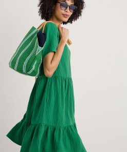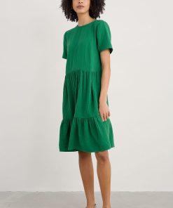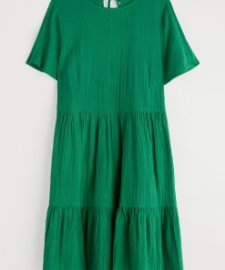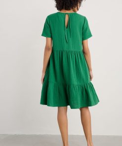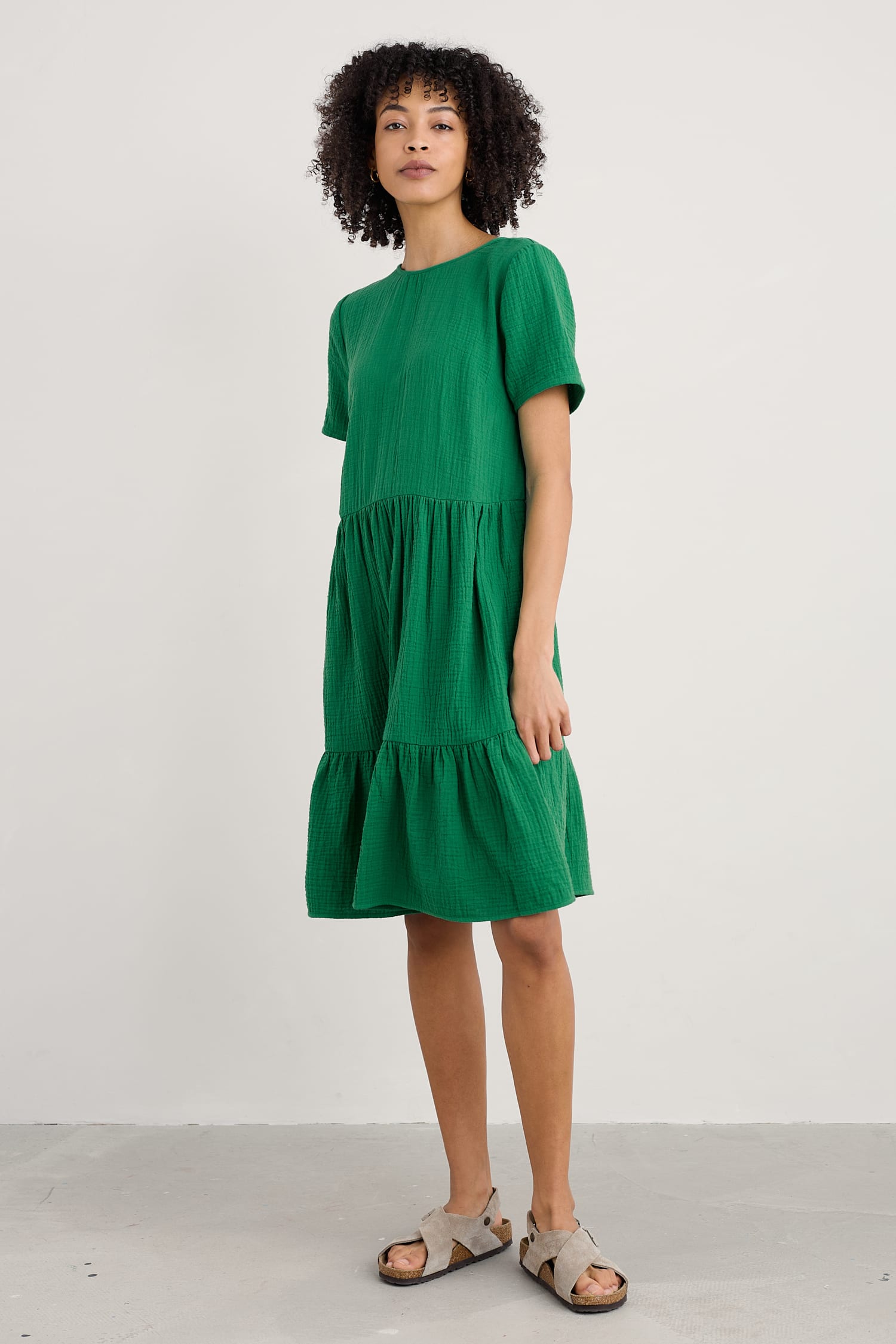 An easy on-the-knee dress with subtle tiers, made from new, beautifully soft and breathable double cloth fabric. Two layers of loose-weave organic cotton are layered together to create a dress that feels airy but substantial, elegant but with a relaxed crinkle. Perfect for holiday packing.