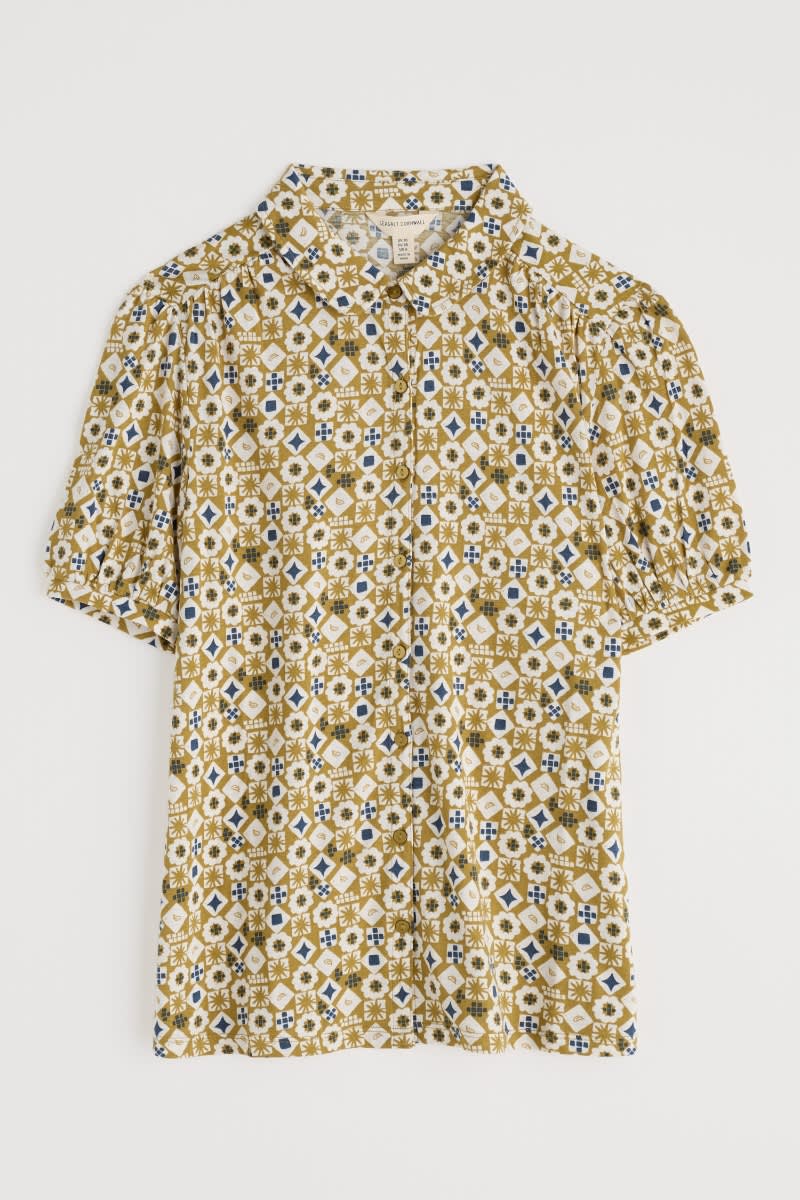 Seasalt Cornwall Women’s Embrace Puff Sleeve Printed Blouse – Summer Top | Potters Marks Pear