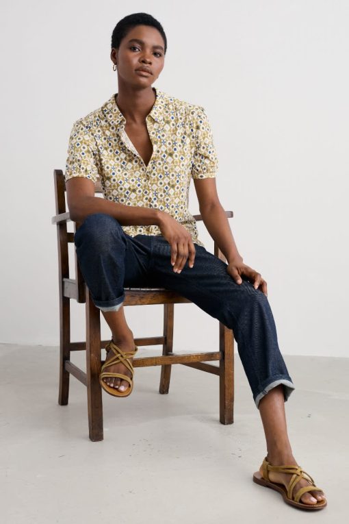 Seasalt Cornwall Women’s Embrace Puff Sleeve Printed Blouse – Summer Top | Potters Marks Pear