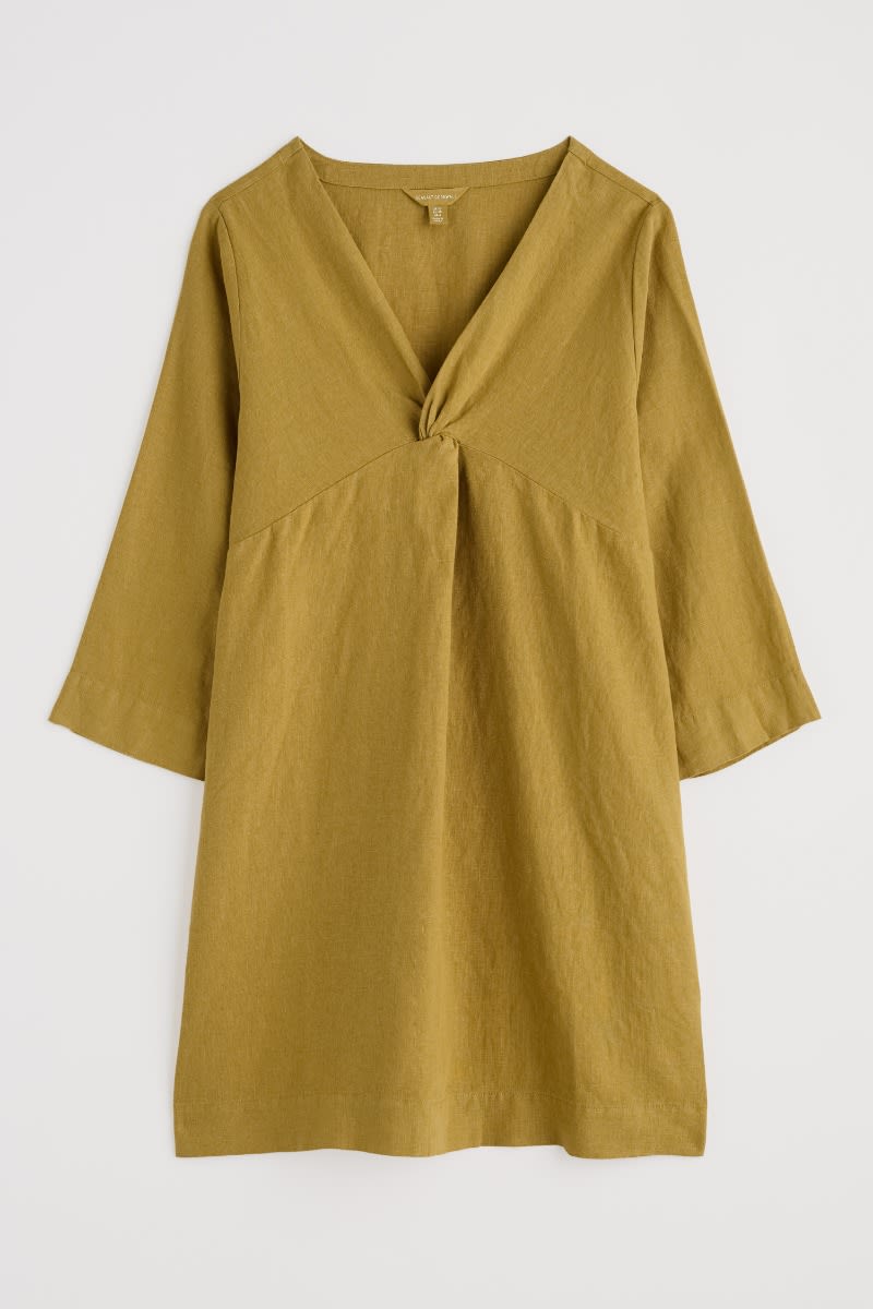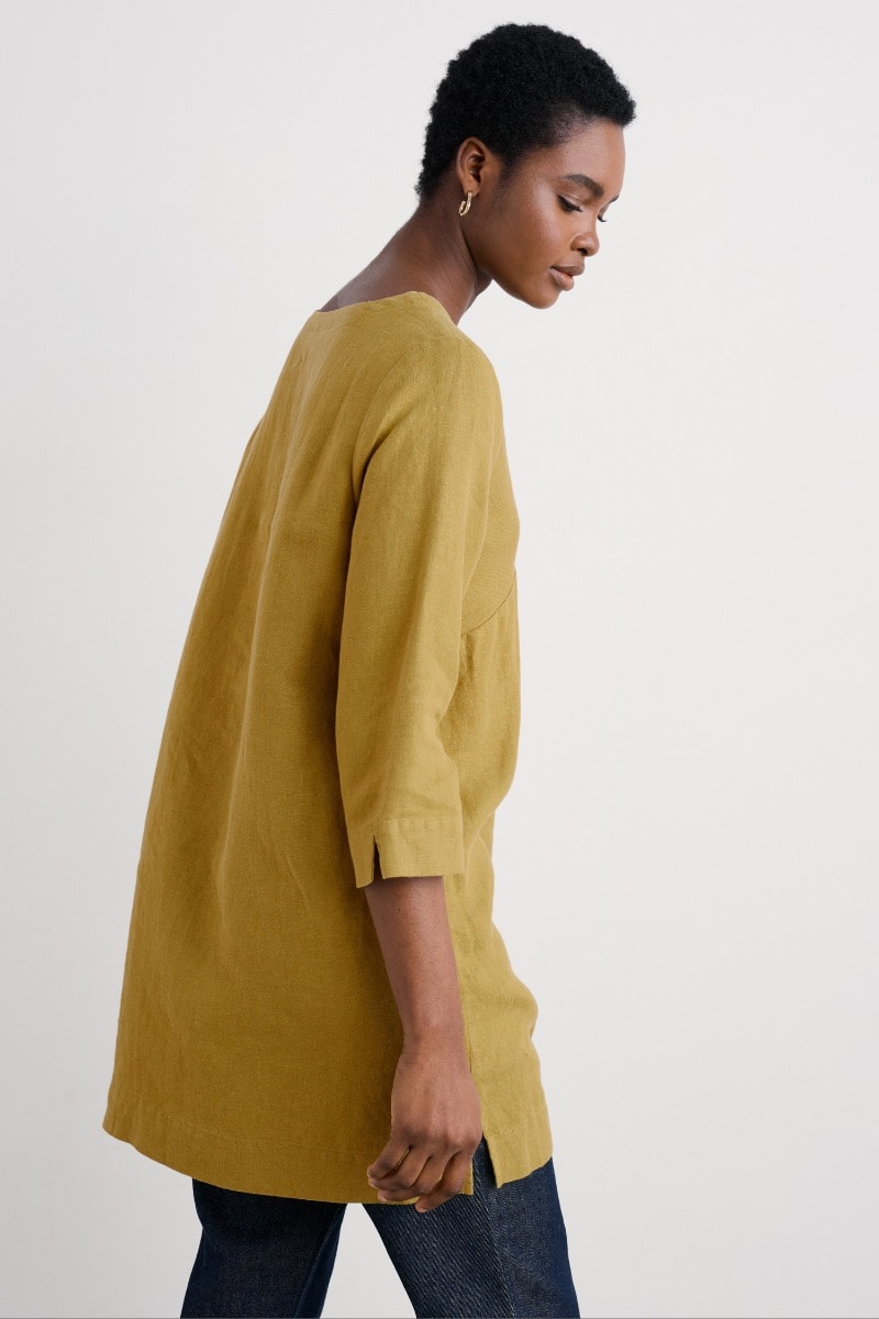 A mid-length tunic woven from 100% pure linen. We’ve given the Golitha Falls Tunic a soft A-line shape and statement twist front detail. The three-quarter length sleeves are finished with a subtle notch slit, which is then echoed at the hem of the tunic. Pair with shorts or leggings for style you’ll love all year round.