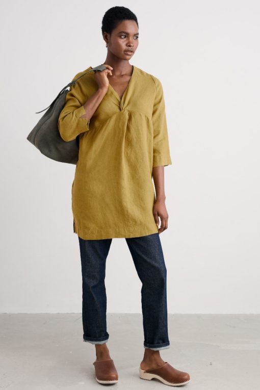 A mid-length tunic woven from 100% pure linen. We’ve given the Golitha Falls Tunic a soft A-line shape and statement twist front detail. The three-quarter length sleeves are finished with a subtle notch slit, which is then echoed at the hem of the tunic. Pair with shorts or leggings for style you’ll love all year round.