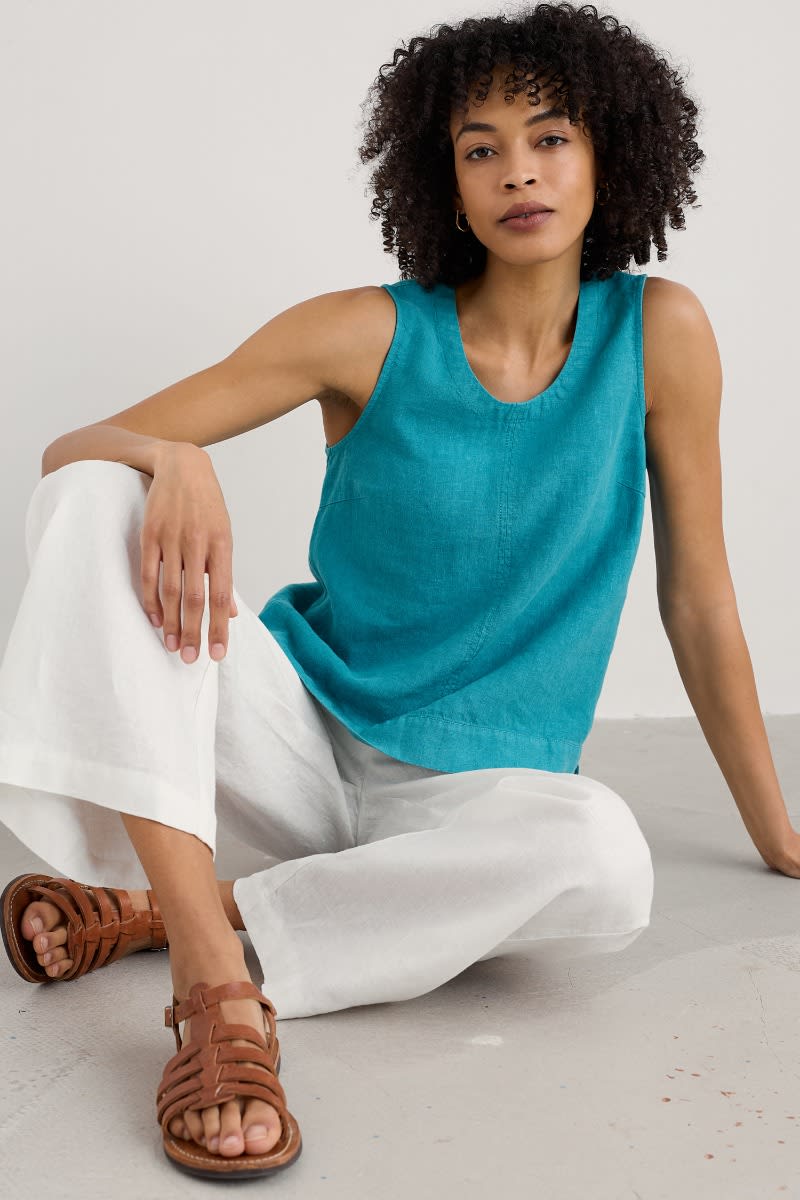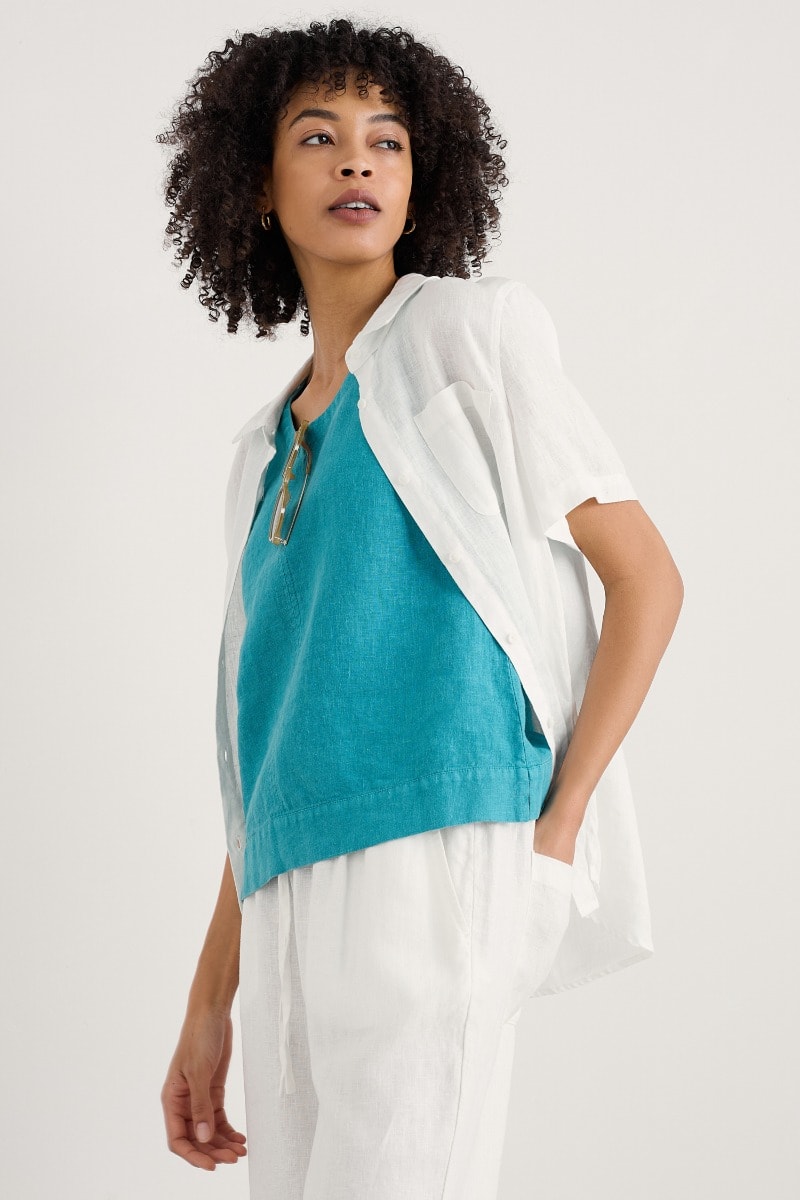 A simple, versatile style for summer adventures, whether you’re exploring the shoreline or gallery-hopping in the city. Made from soft, breathable linen printed with joyful summer blooms.