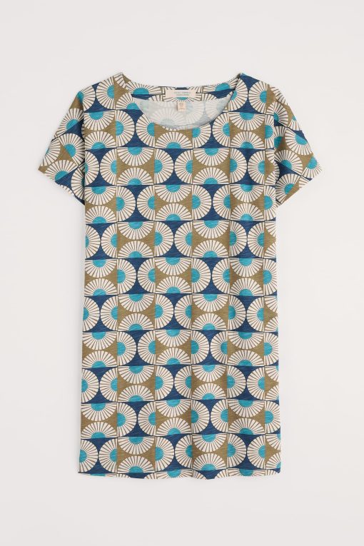 Organic cotton jersey tunic with handy pockets. Choose from a delicate, deco-style floral print or nautical plain. We’ll wear ours over soft jersey leggings for weekday comfort, and under a light raincoat for weekend strolls and picnic lunches by the sea.