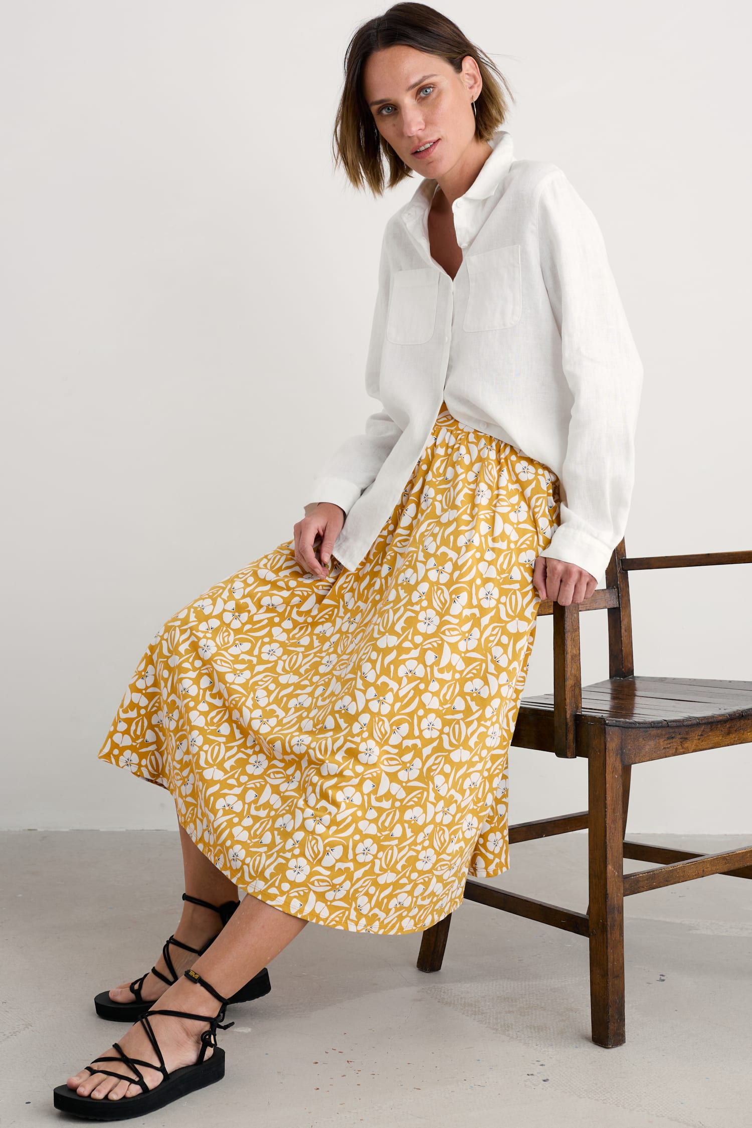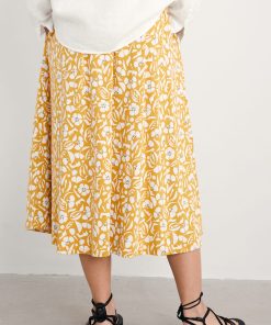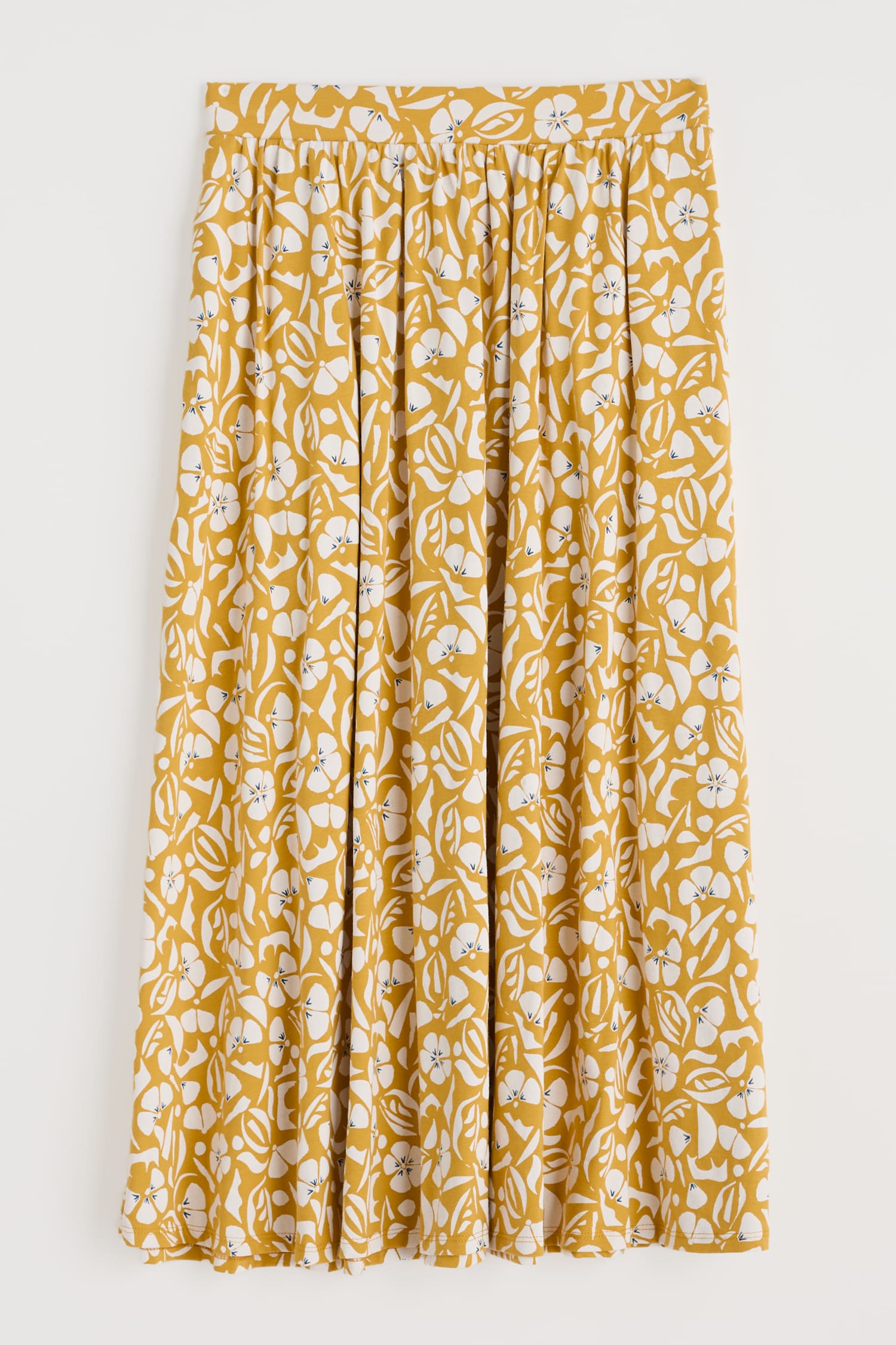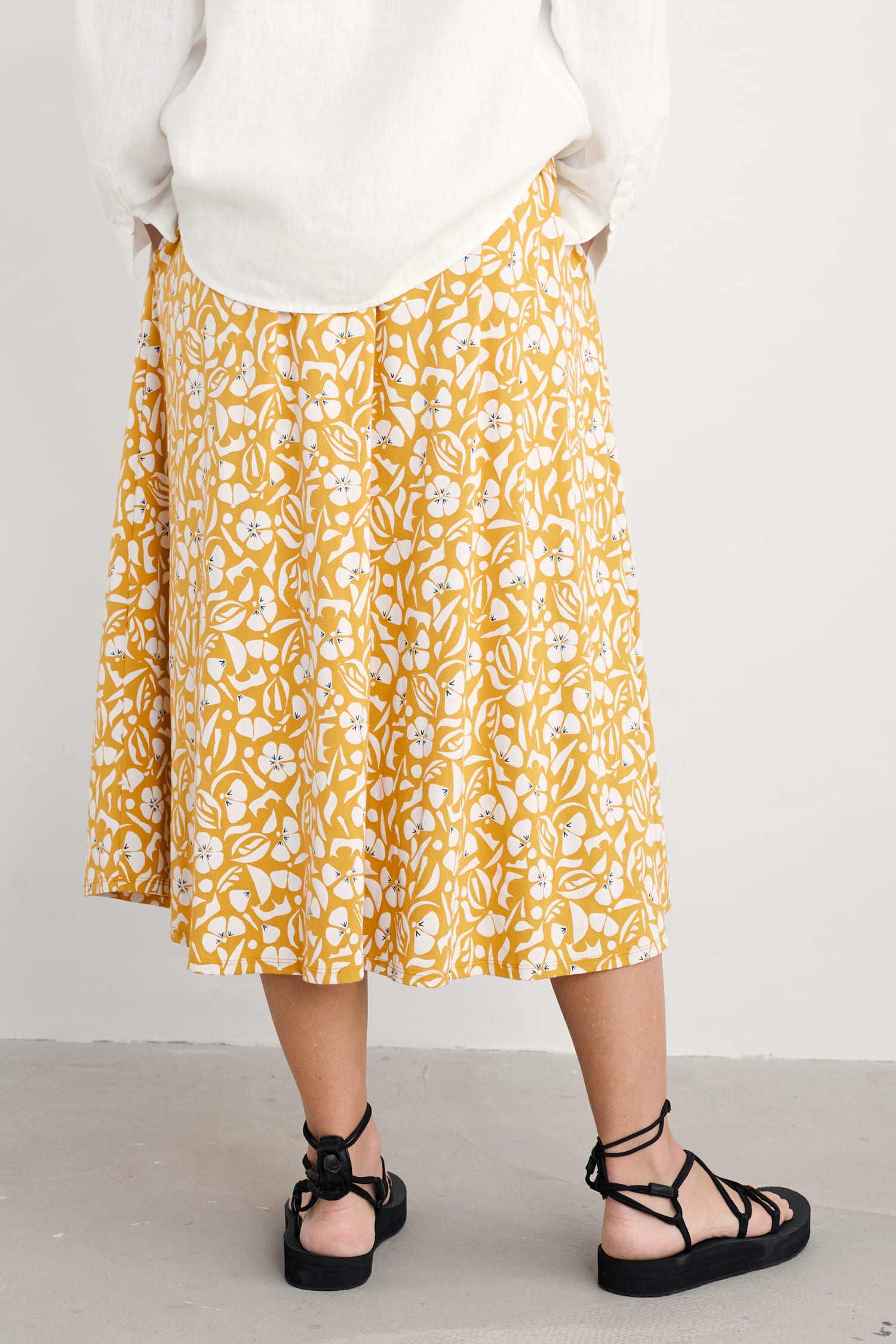 Seasalt Cornwall Women’s Ready Sail Jersey Midi Skirt – Comfortable Summer Skirt | Collaged Floral Golden