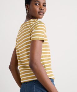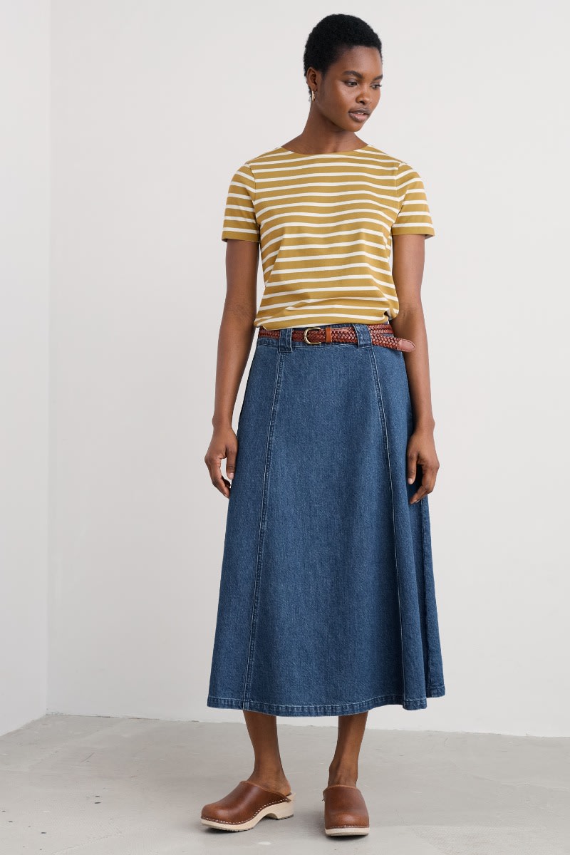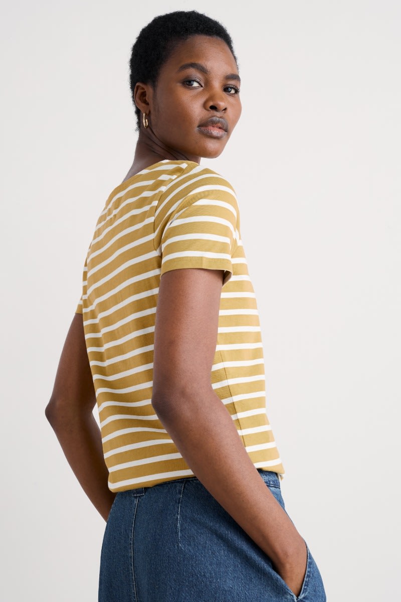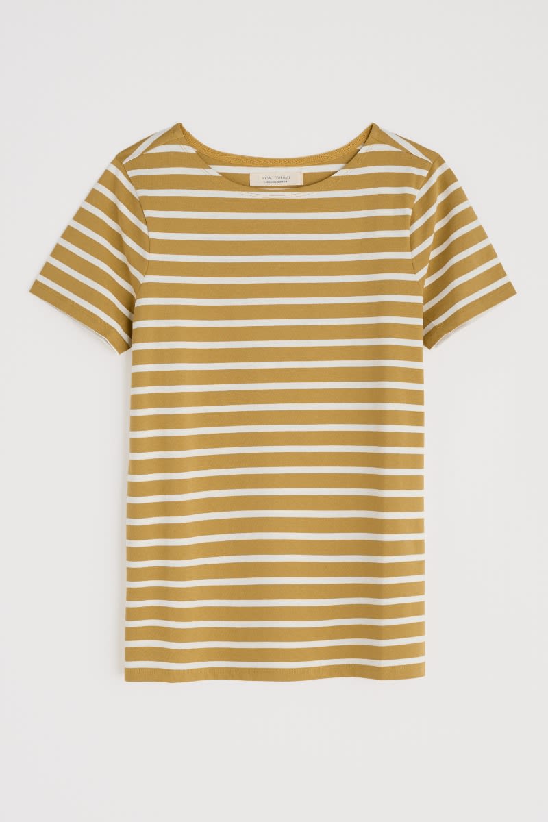 Our Cornish Sailor T-Shirt is great way to add a dash of stripes to your wardrobe, with wide, evenly-spaced stripes inspired by Cornishware. Made from super soft organic cotton jersey, it has short sleeves and a classic boat neck. Perfect with just about everything, it’s a summer must-have.