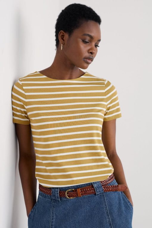 Our Cornish Sailor T-Shirt is great way to add a dash of stripes to your wardrobe, with wide, evenly-spaced stripes inspired by Cornishware. Made from super soft organic cotton jersey, it has short sleeves and a classic boat neck. Perfect with just about everything, it’s a summer must-have.