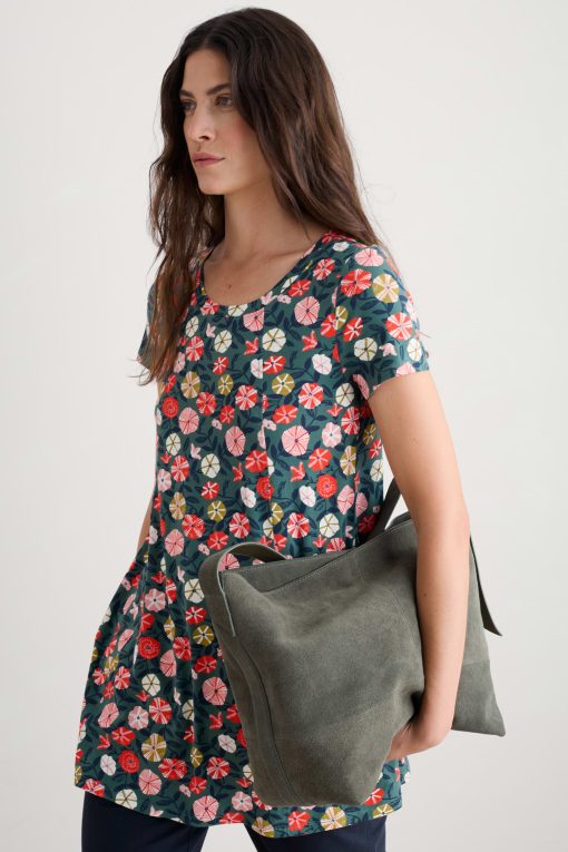 Fresh for the coming season, our short-sleeve jersey tunic blooms in a new floral print. It’s made from soft organic cotton, with a dash of added stretch for comfort and fit. Front seams create a lovely, flowing shape that drapes beautifully as the tunic flares out towards the hem. In-seam welt pockets add a pleasing finishing touch.
