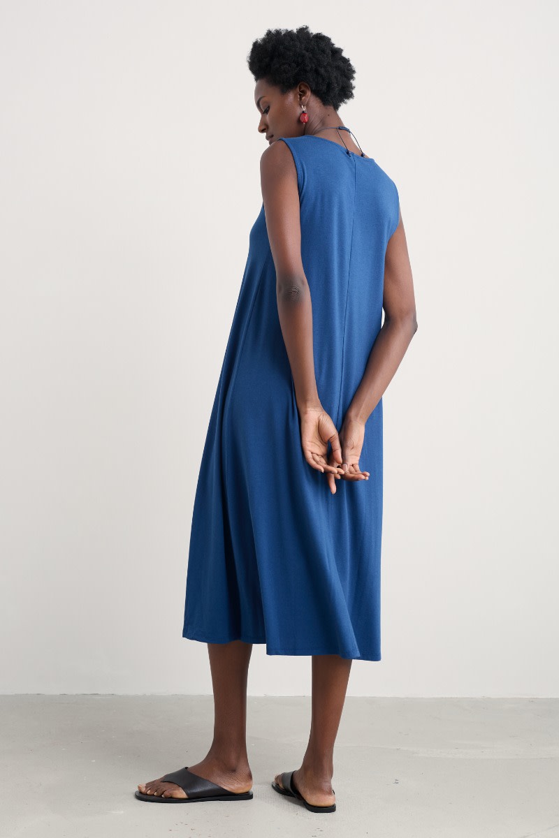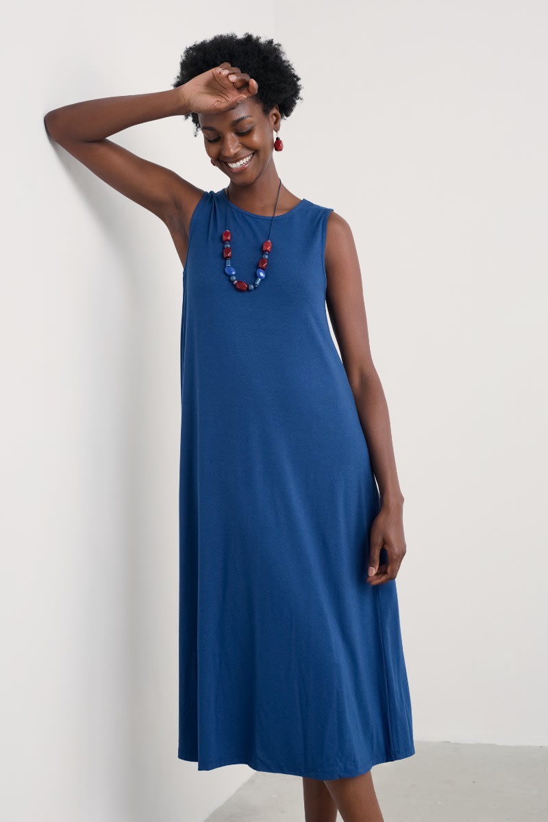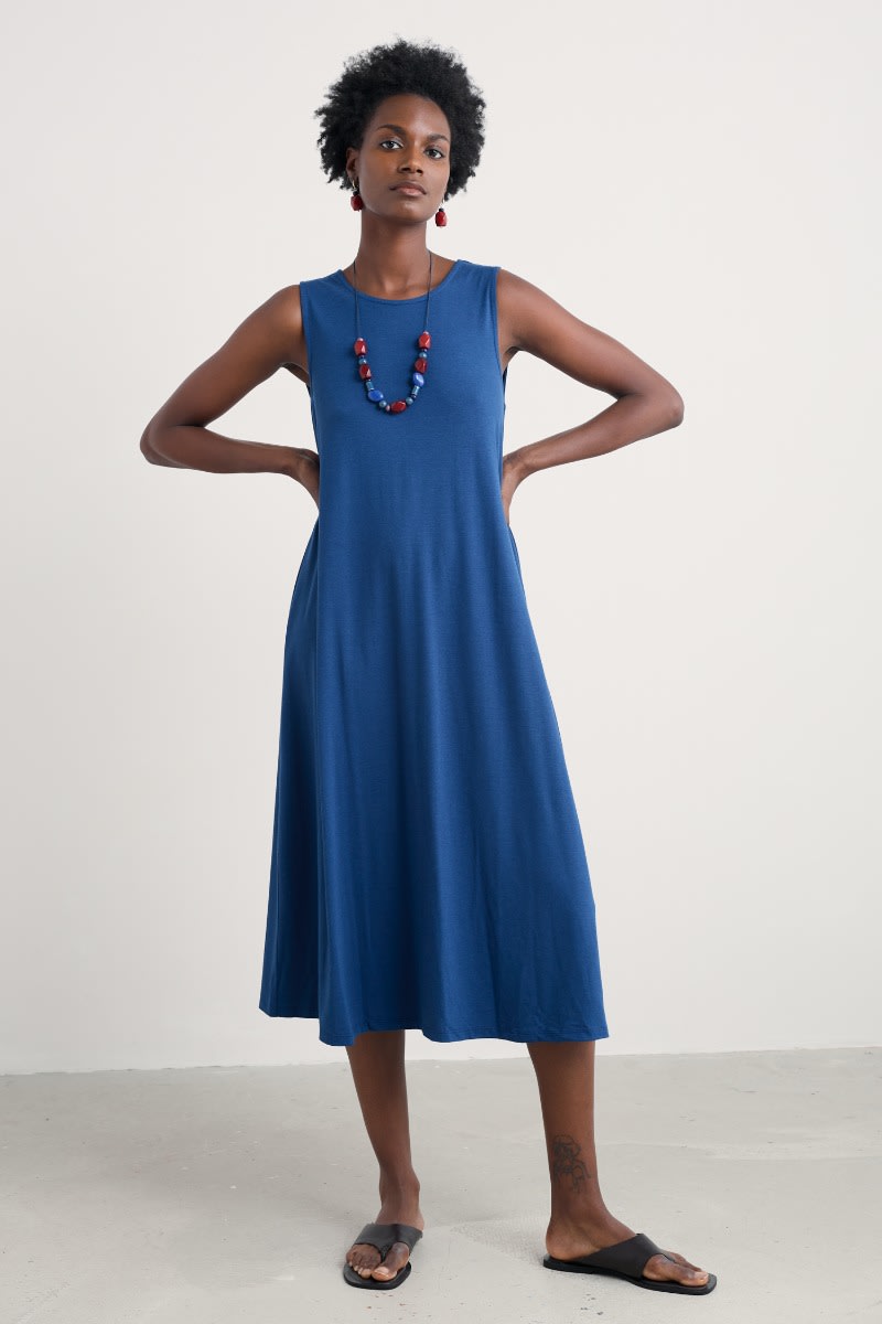A timeless dress for summer made from a soft jersey blend. The slim-fitting sleeveless dress flares out towards the midi-length hem, and we’ve added a touch of stretch for comfort and fit. A soft scoop neckline completes the lovely simplicity of this versatile piece.
