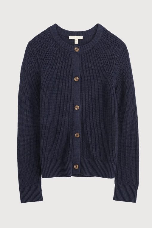 With its relaxed fit and raglan sleeves, this is an easy-wearing and modern cardigan. It’s crafted from soft and breathable organic cotton, with a warm 5-gauge knit, and fastens with a neat row of mock horn buttons. Ribbed trims at the crew neck, hem and cuffs add classic knitwear detailing.