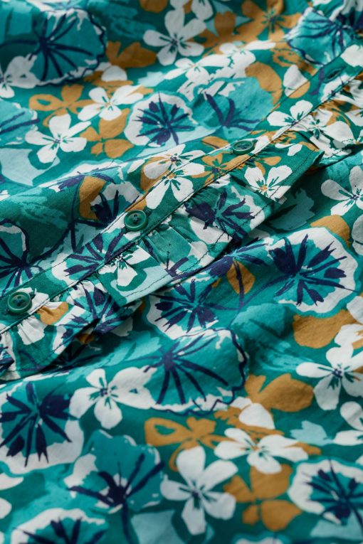 An easy-wearing take on a classic blouse, crafted from GOTS-certified organic cotton. Soft gathers give the blouse a relaxed shape, complemented by gently full, 3/4 length sleeves. Pretty frills around the neck and buttoned placket match those on the smocked cuffs. Fans of our Feather Star Top will recognise the fit of this lovely new piece.