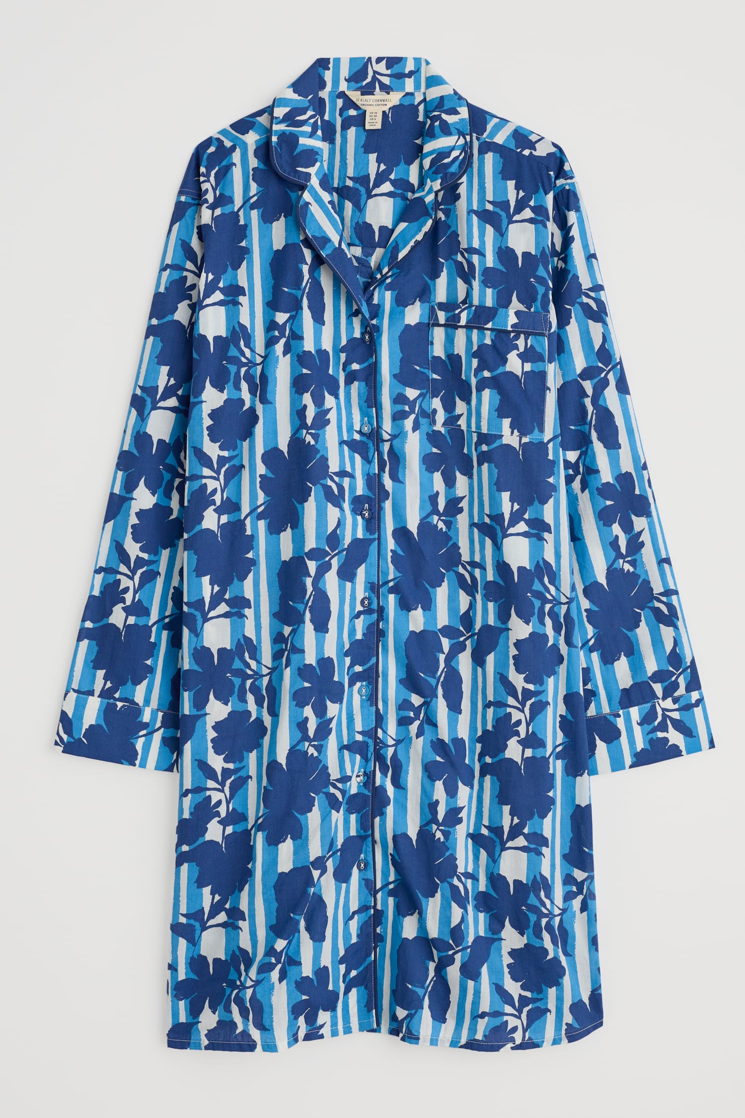 For restful nights and long, lazy mornings, relax in our comfortable Dawn Air nightshirt. It’s made from woven organic cotton for breathable softness, with a vibrant new Seasalt print. We’ve added plenty of classic nightshirt details, such as a revere collar with piped edges, which matches the trim at the placket and cuffs. A pair of in-seam pockets and a chest patch pocket are handy extra features.