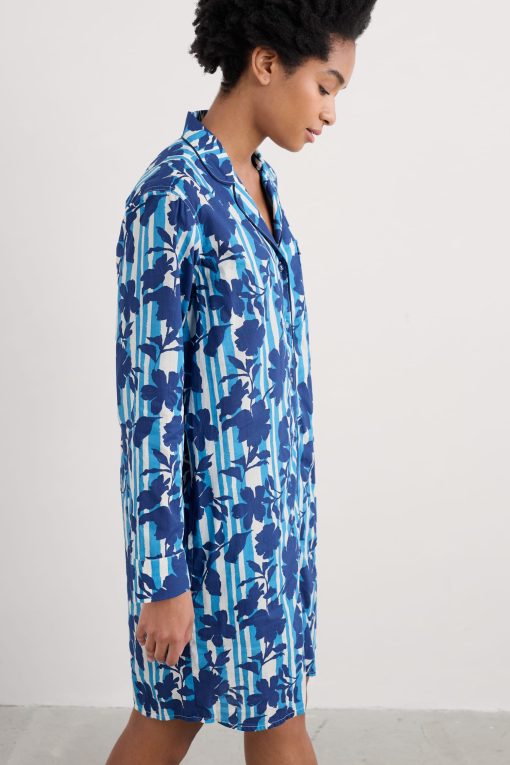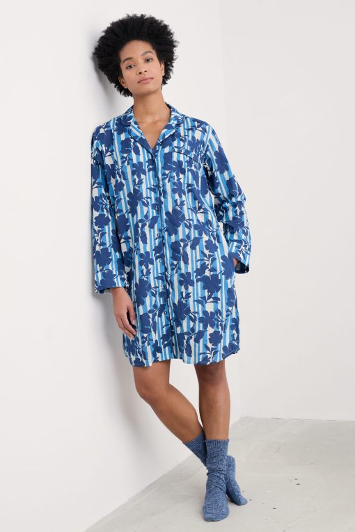For restful nights and long, lazy mornings, relax in our comfortable Dawn Air nightshirt. It’s made from woven organic cotton for breathable softness, with a vibrant new Seasalt print. We’ve added plenty of classic nightshirt details, such as a revere collar with piped edges, which matches the trim at the placket and cuffs. A pair of in-seam pockets and a chest patch pocket are handy extra features.