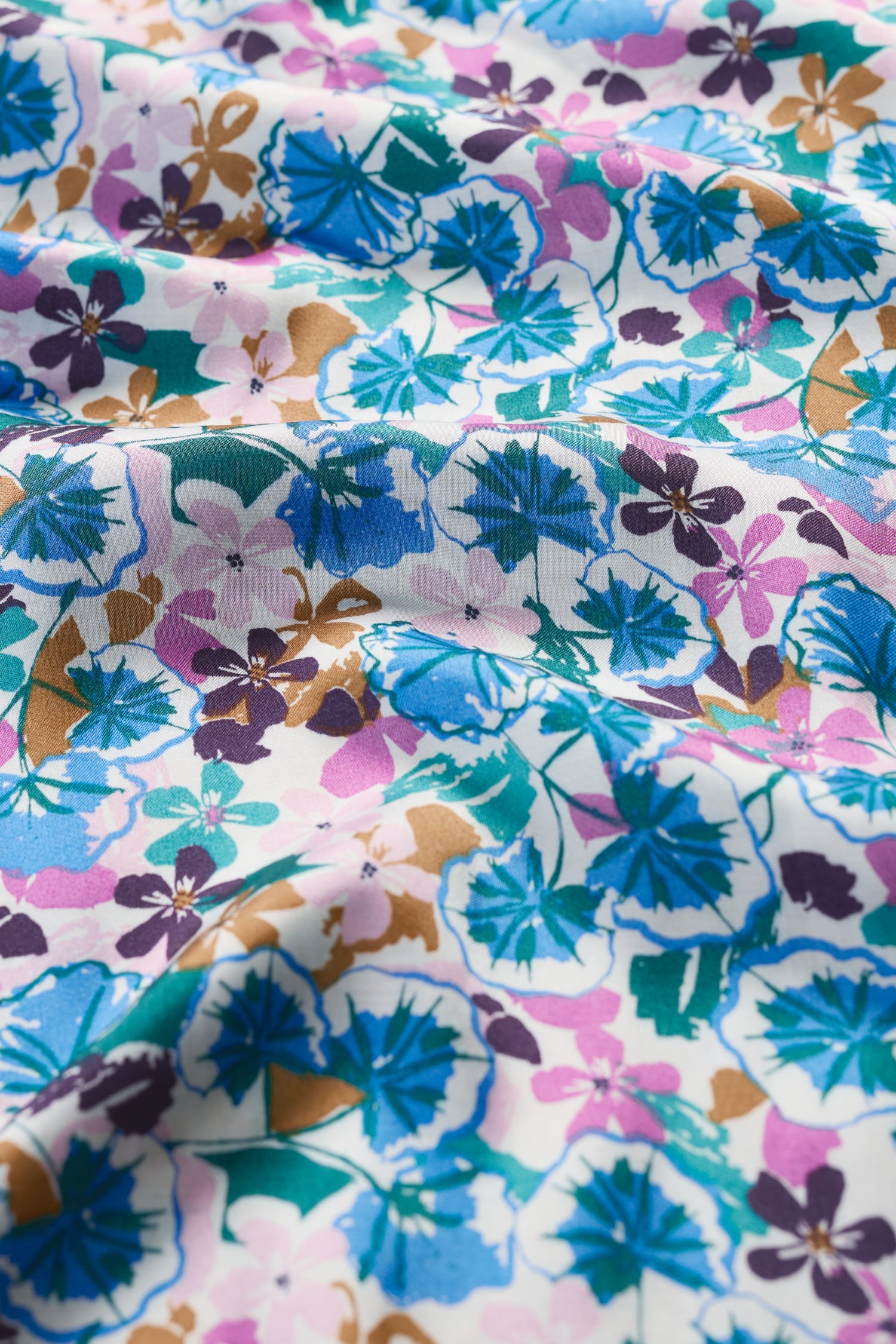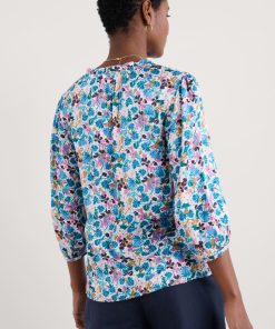 Our Flower Weave top is made from a drapey satin fabric for a soft and airy fit. The volume in the bodice is complemented by the three-quarter blouson sleeves. A frill at the neck dips into a notch neckline, creating a pretty focal point. A lovely piece in an original Seasalt print.