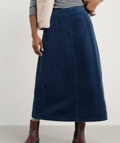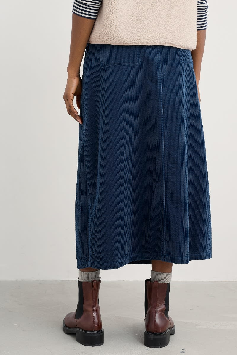 A timeless skirt made from a supple, organic cotton seersucker cord, with fine wales and an easy structure. The simple A-line shape sits on the natural waist, creating a vintage-inspired silhouette. We’ll pair ours with everything from simple knits to patterned shirts, and love styling it with long leather boots in cooler months.